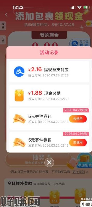 亲测0.13+0.5元现金秒到微信,每天可参与试试