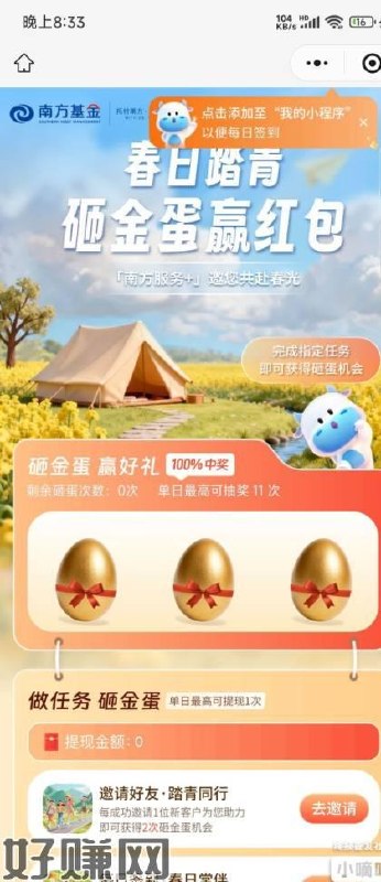 南方基金有点狗了,这波,签到三天给一次抽奖,要么去邀新给两次,虽然全是给红包。但这一波还是显得小气了。
